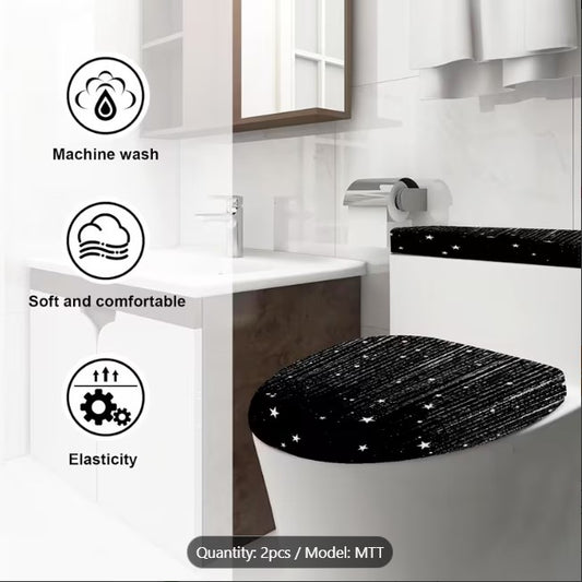 2pcs Starry Rain Black Curtain Pattern Printed Toilet Lid and Tank Cover Set