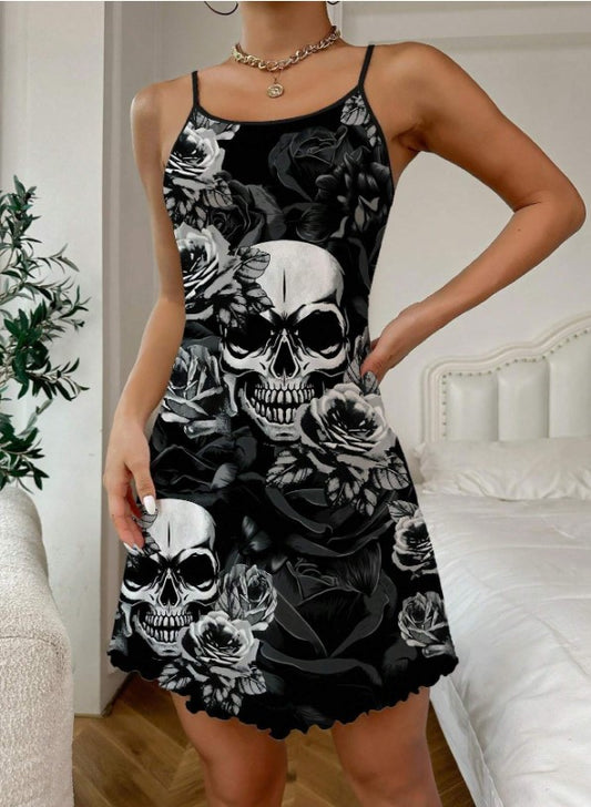 ๐ค๐น Gothic Rose With Skull Print Slip Dress/Nightie ๐น๐ค