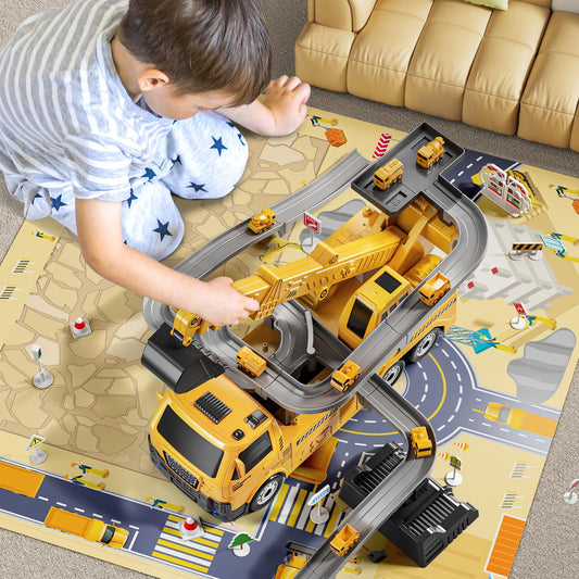๐ง๐ท Engineering Crane & Construction Truck Playset with Race Tracks ๐ท๐ง