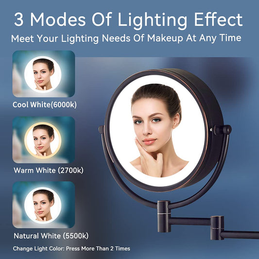 LED Wall Mounted Magnifying Makeup Mirror 360° Rotatable - Gold