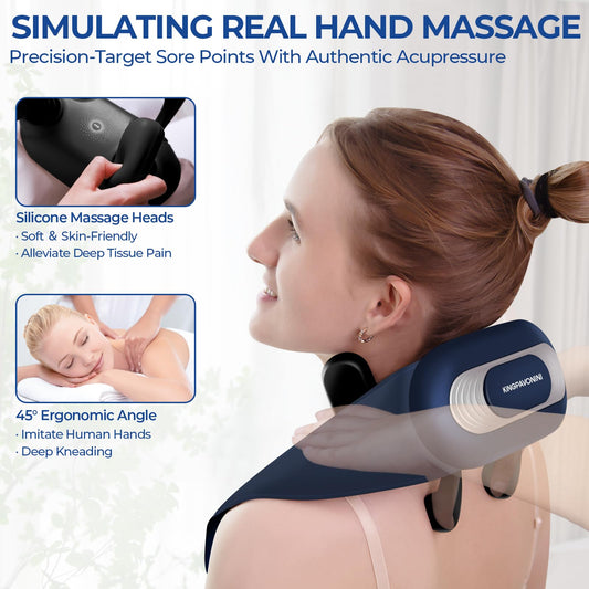 Wireless Heated Neck & Shoulder Massager with Shiatsu Deep Tissue Relief and Voice Guide