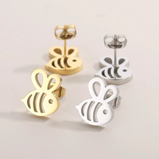 ๐ 18K Gold Plated/Stainless Steel Bee Ear Studs ๐