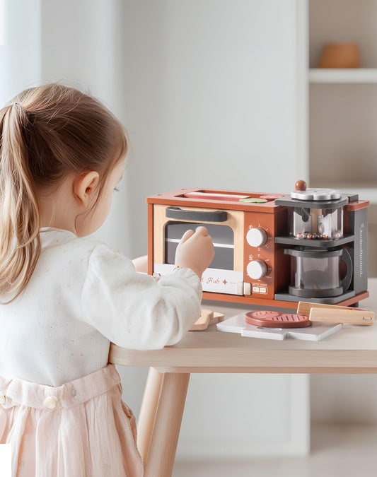 Wooden Play Kitchen Set with Coffee Machine, Oven & Griddle