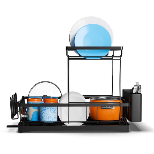 2-Tier Dish Drying Rack with Drip Tray & Utensil Holder