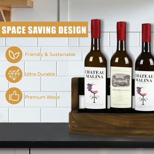 Wall Mounted Wooden Wine Rack Bottle Holder with Glass Shelf for 6 Bottles
