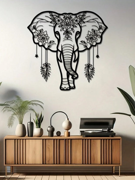 🐘 Iron Elephant Wall Art – Boho Floral Design 🐘