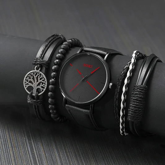 ⌚️❤️ Men’s Belt Round Pointer Quartz Watch & Bracelet Set 💙⌚️