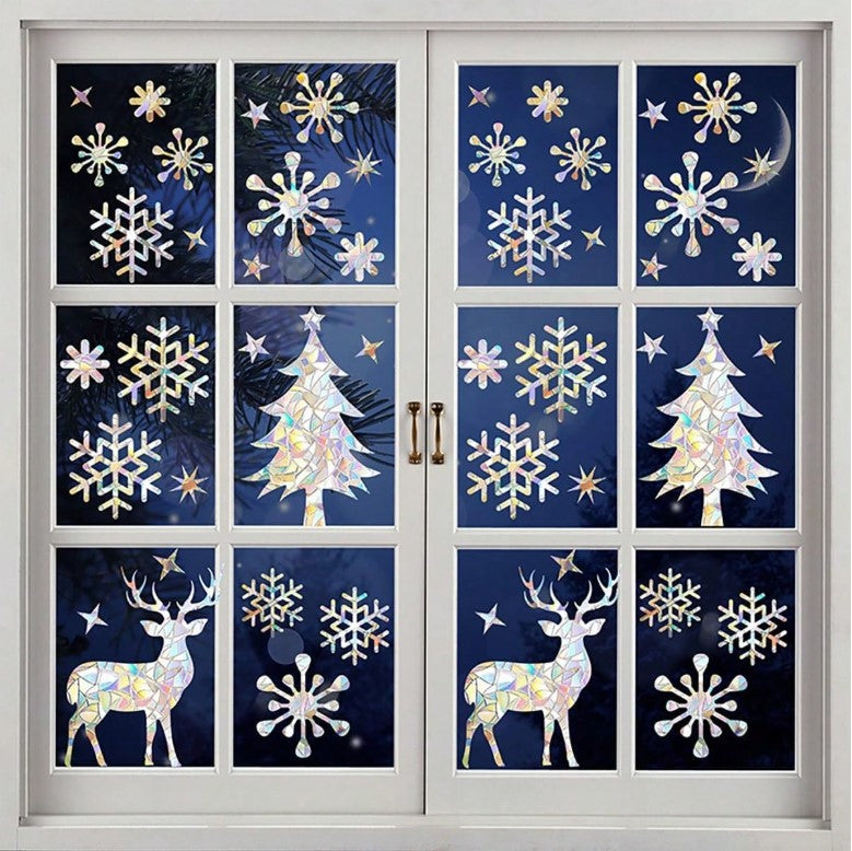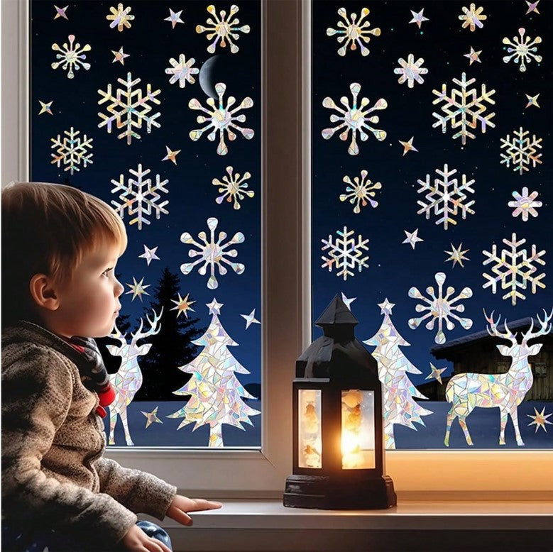 Transform your windows into a magical winter wonderland with these Vinyl Prismatic Reindeer & Snowflake Clings! 🦌🌈