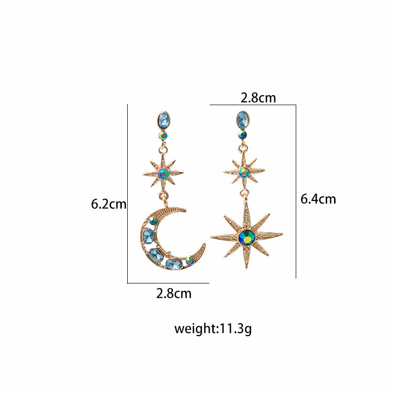 Featuring a blue and gold alloy design with sparkling inlaid rhinestones, these costume jewellery earrings bring vintage elegance and cosmic charm to any look. 💎🌙