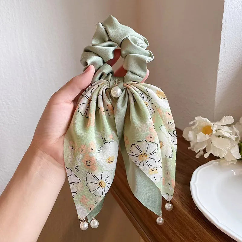🎀 3pc Ribbons & Pearls Scrunchie Set 🎀