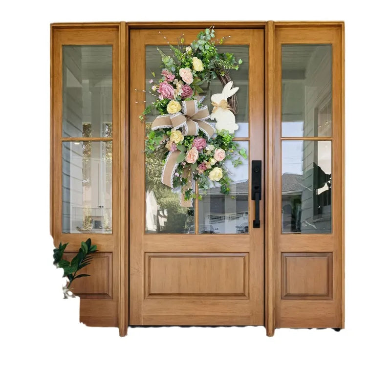 Easter Bunny Wreath featuring an artificial plant vine design in a classic round shape. Perfect for doors, walls, or party spaces, this cheerful hanging decoration adds a fresh spring feel and festive joy to your home or Easter celebrations.