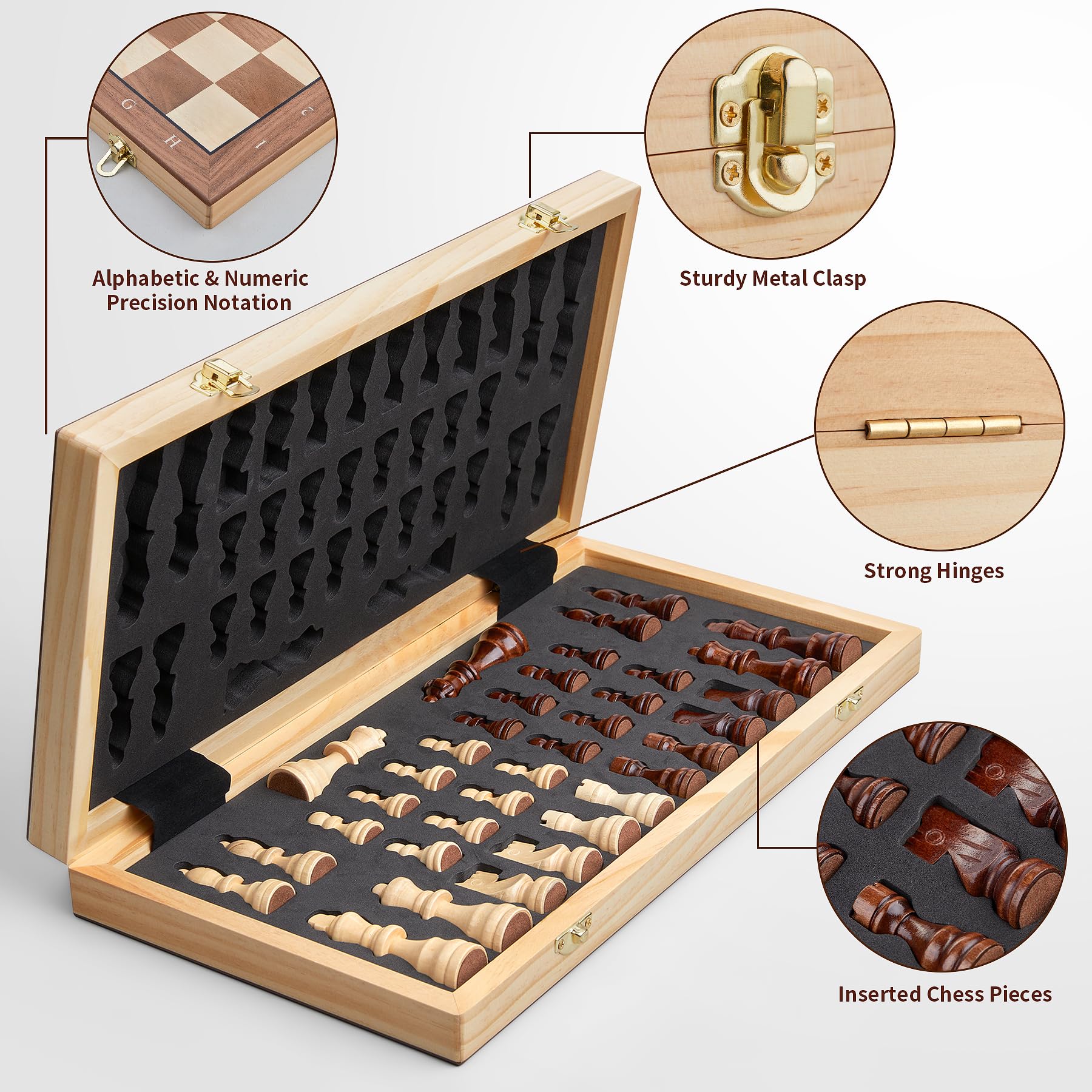 - Magnetic chess pieces stay firmly in place during play