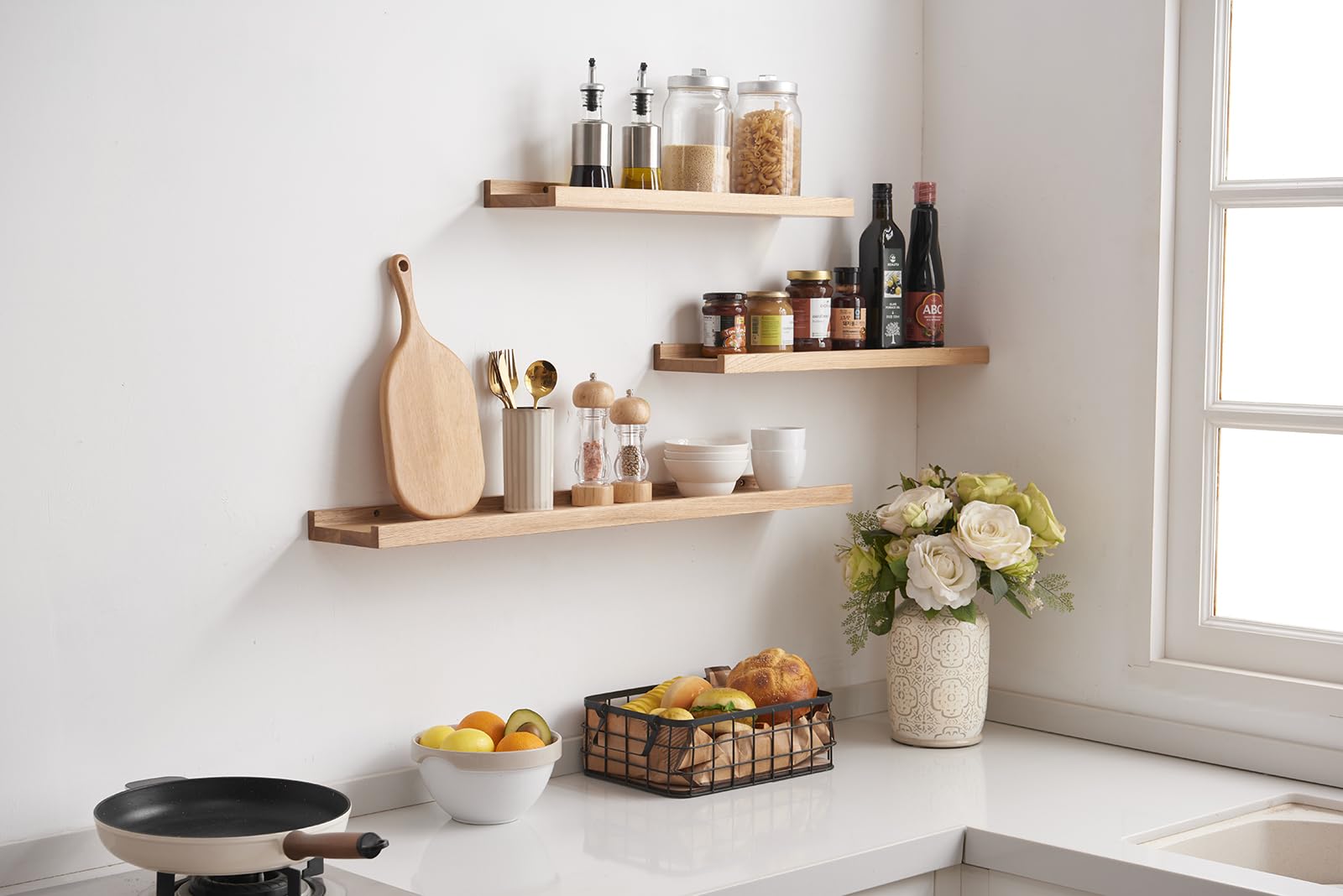 Elegant 60cm Solid Oak Wooden Floating Wall Shelf