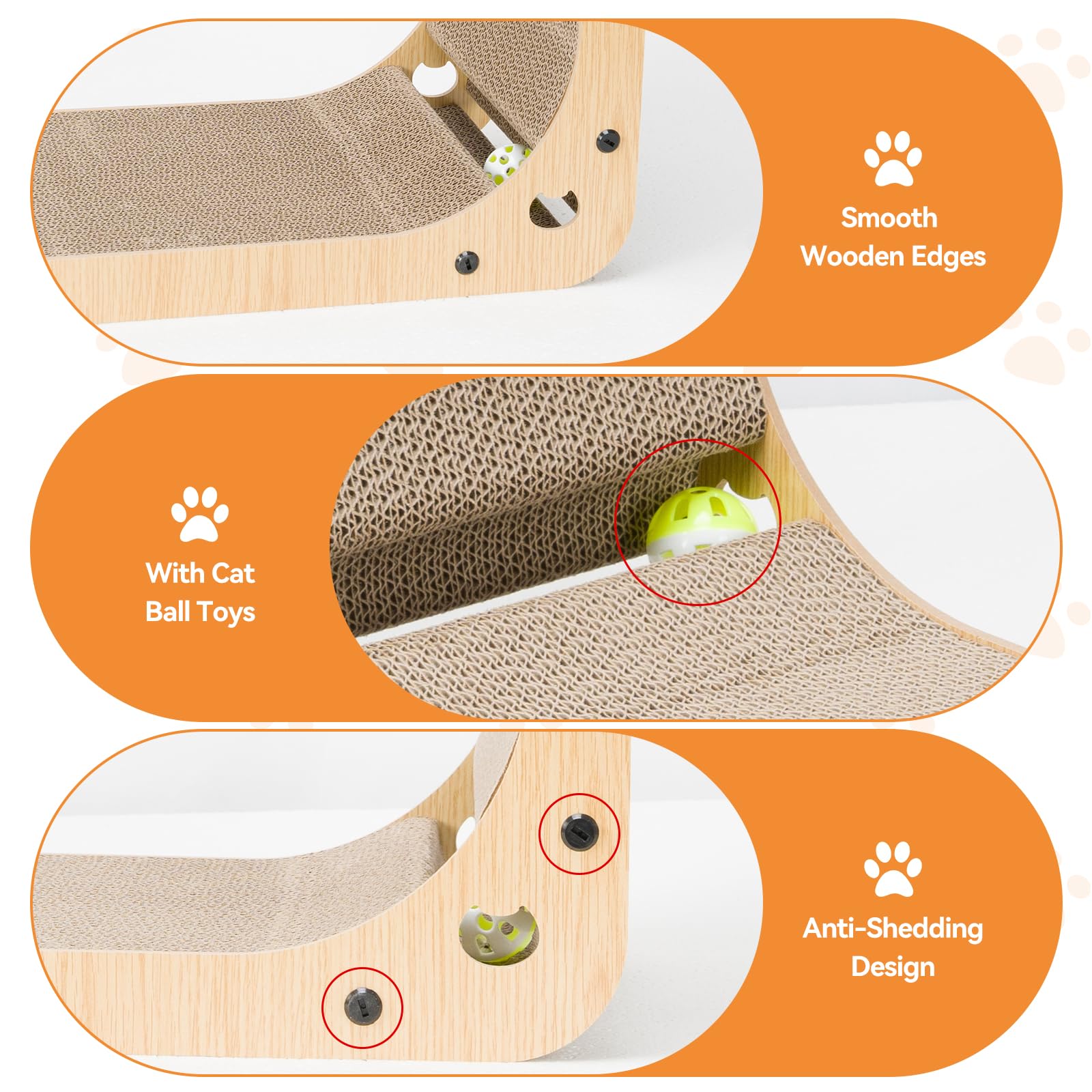 60cm Tall L Shape Cat Scratcher Pad with Catnip & Toy Ball - Space-Saving Scratch Cardboard for Indoor Cats