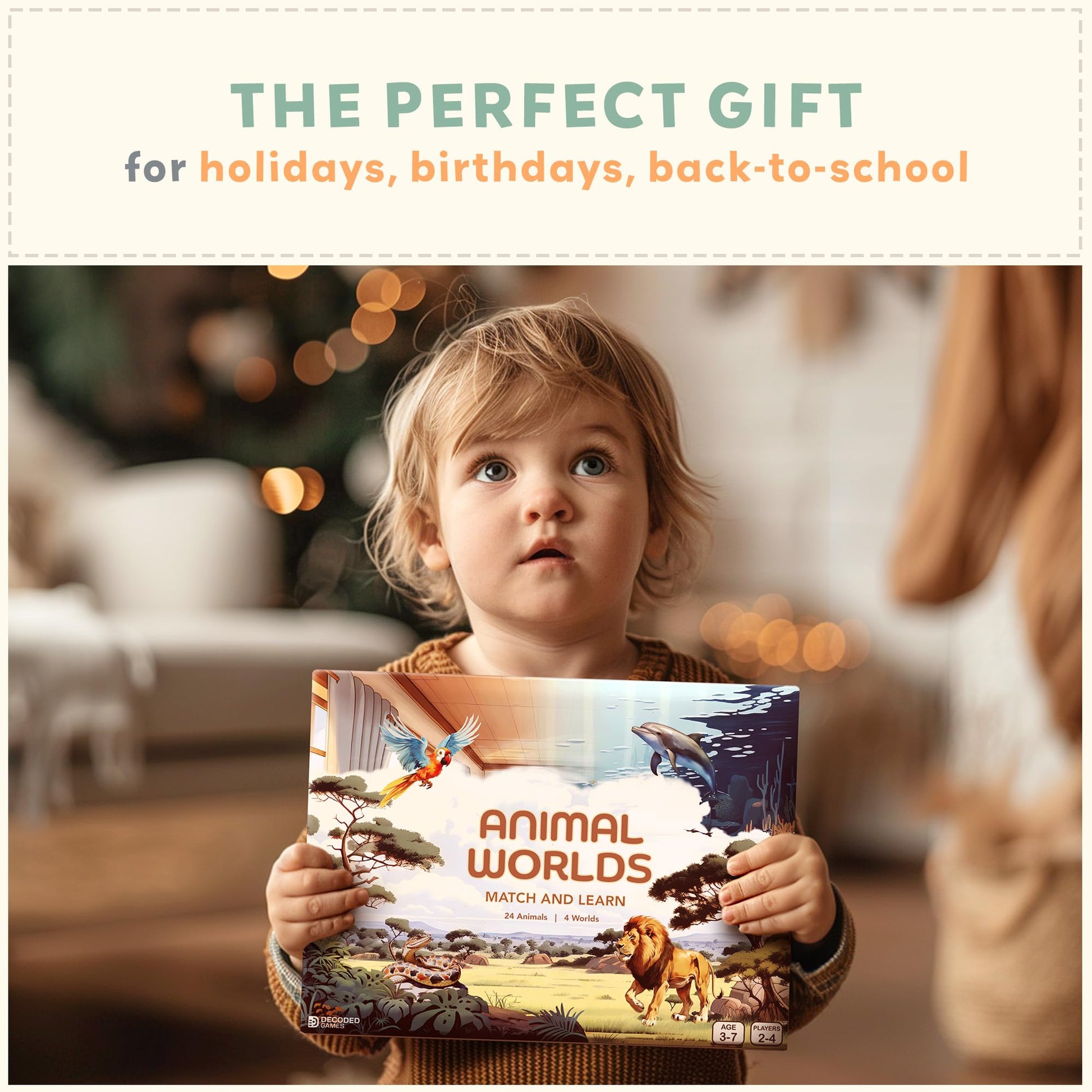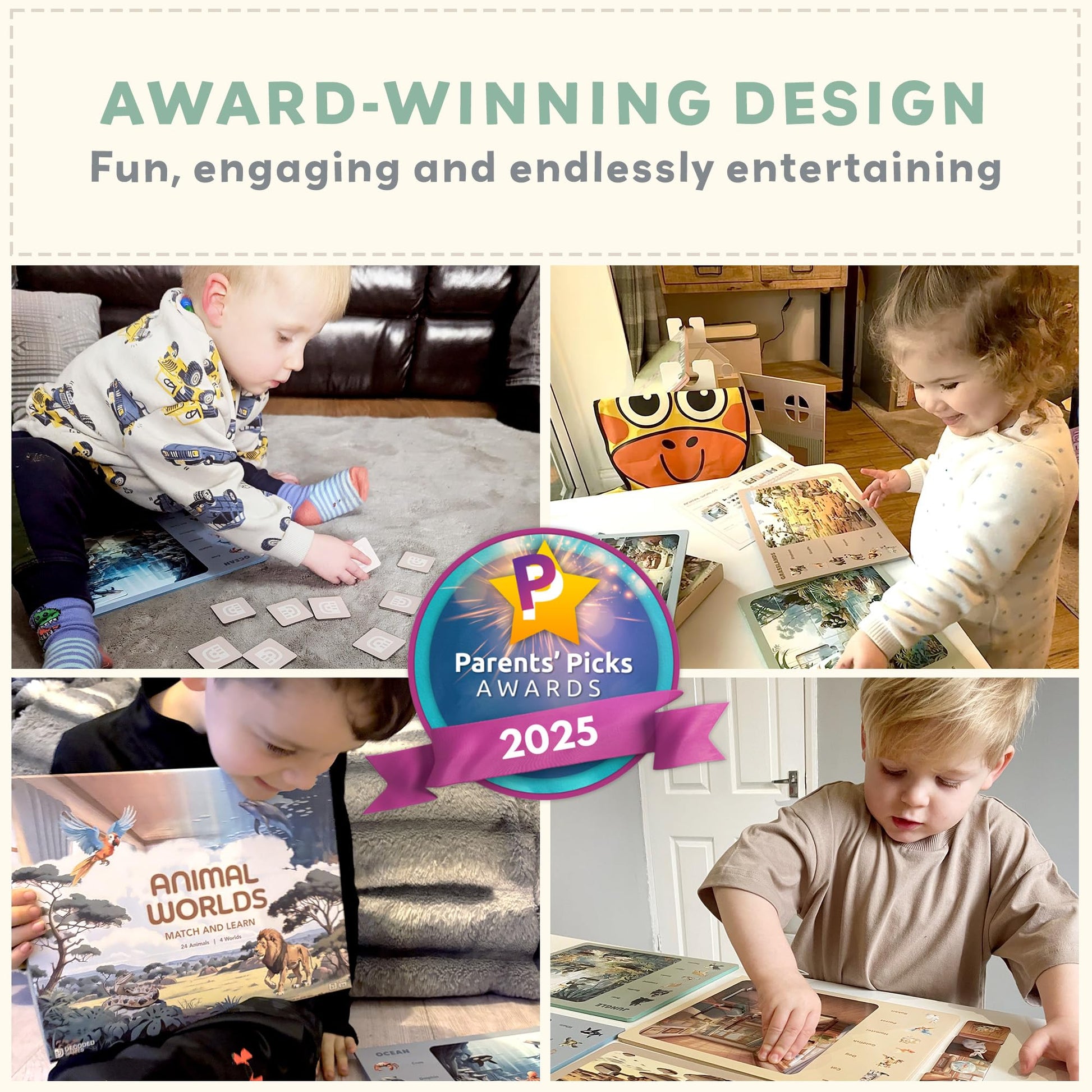Animal Worlds Matching Game for Kids Aged 3-7 - Fun Memory Board Game for Toddlers & Families