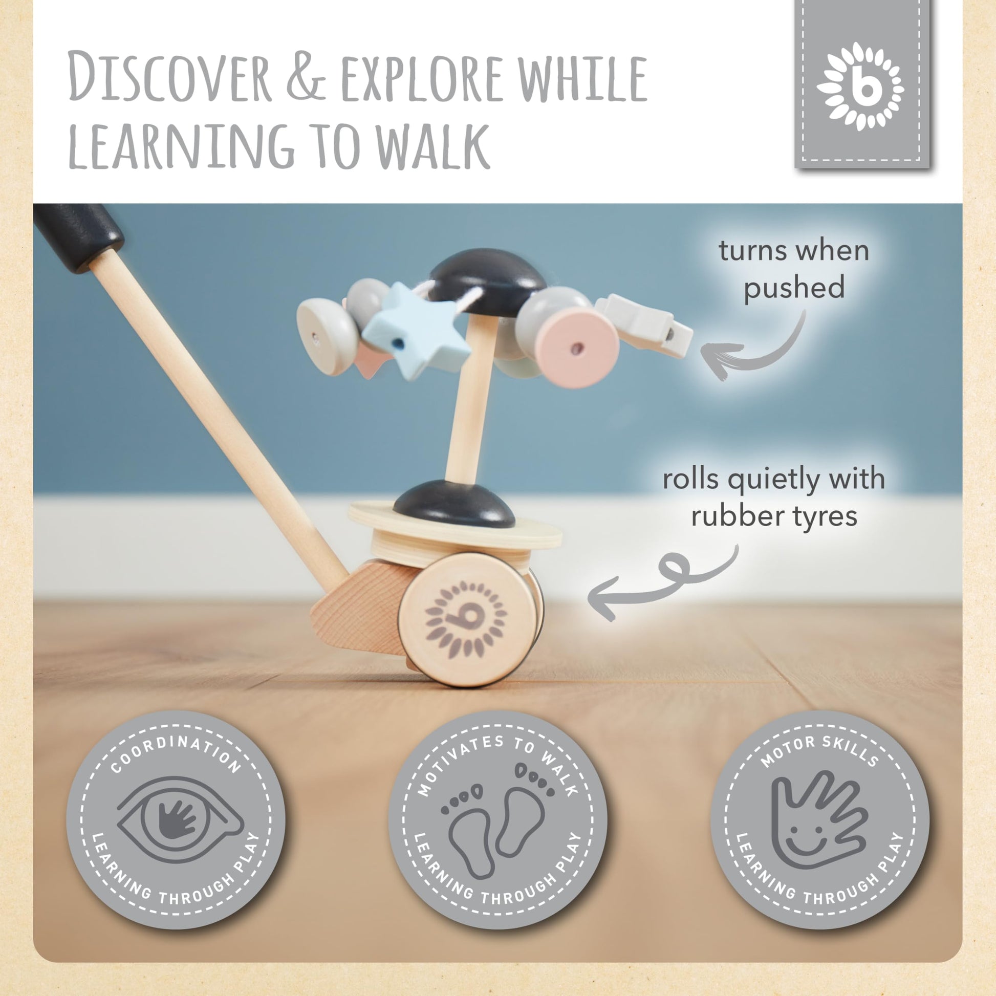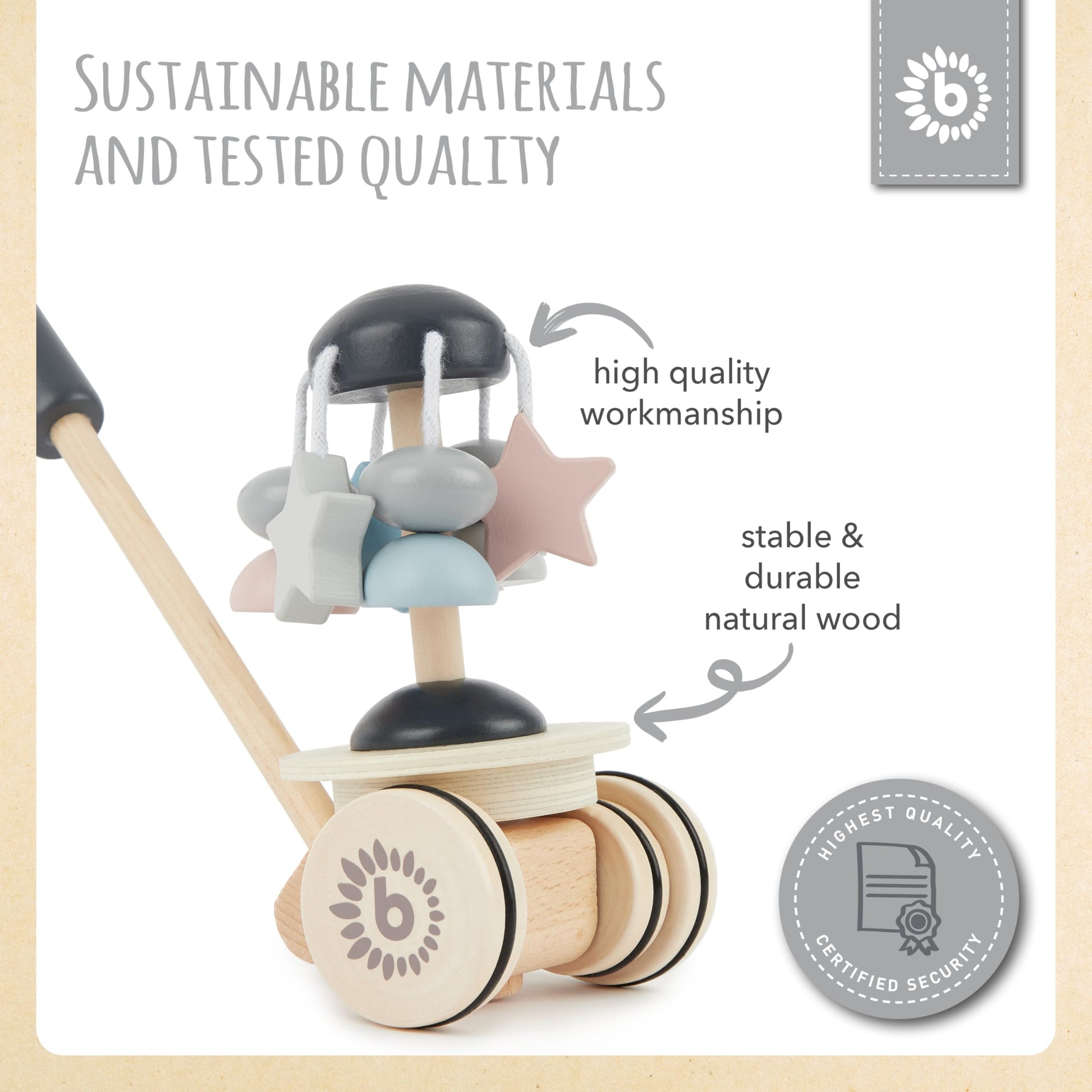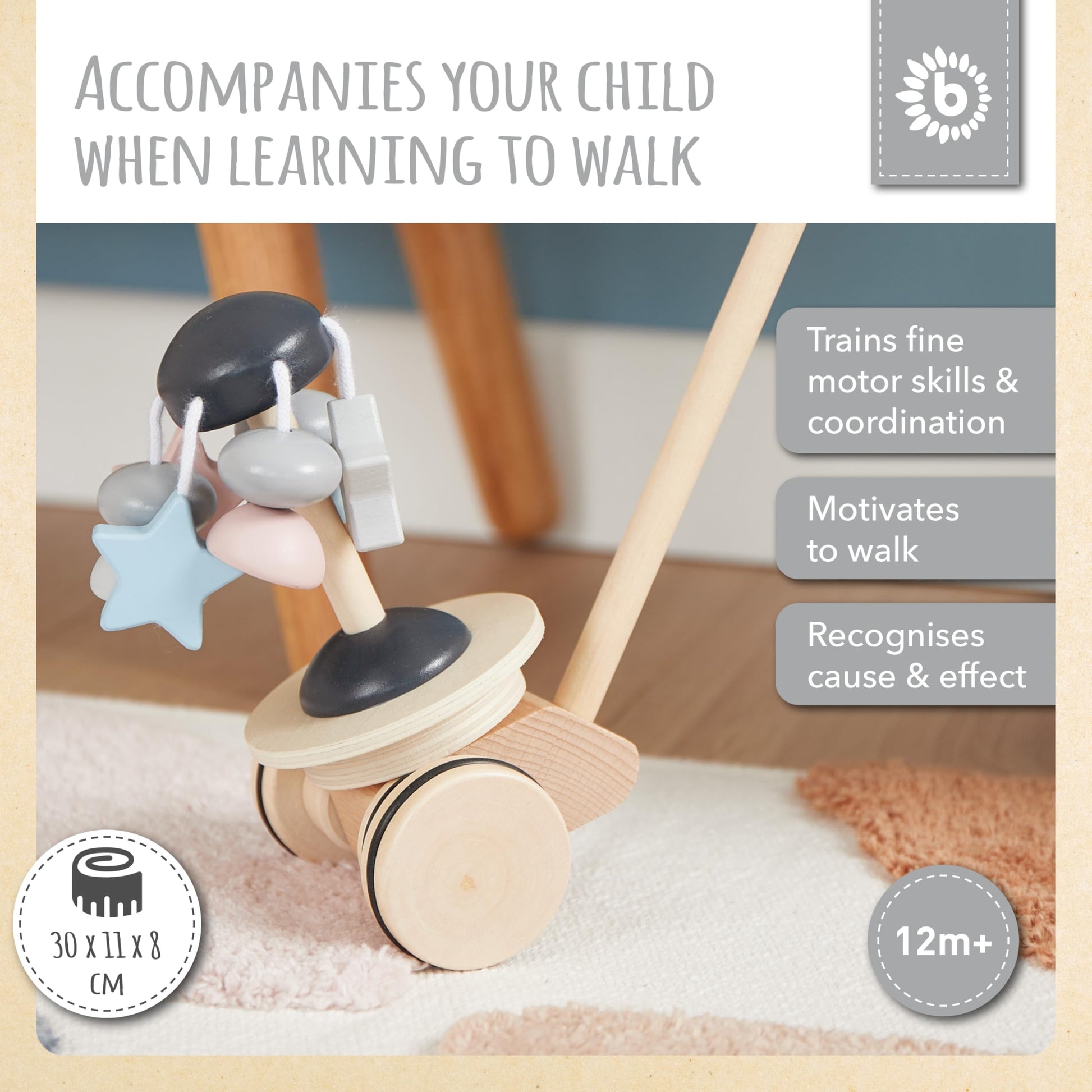 Blue Wooden Baby Push Along & Pull Along Walking Toy with Stars and Beads