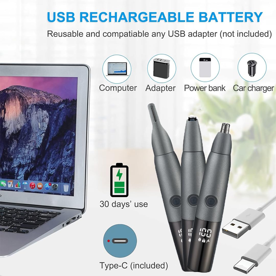 Ear and Nose Hair Trimmer for Men Painless Electric Grooming Kit Dual Edge Blades - Grey