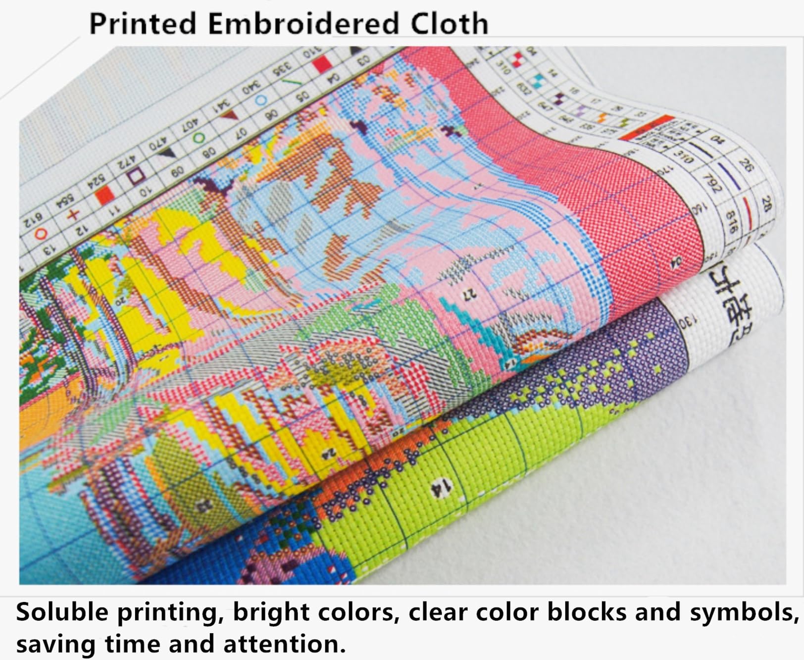 Note: For stamped designs (11CT), use 3 strands of embroidery thread. Do not wet the fabric until stitching is completed, as the printed guide is water-soluble.