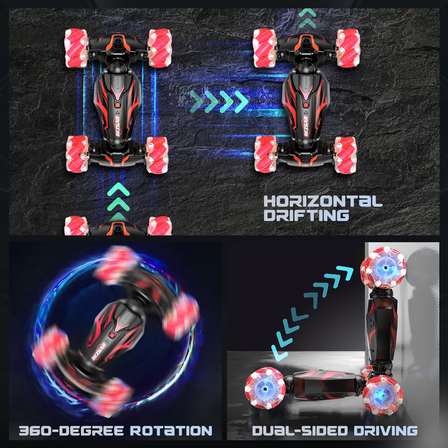 Designed for kids who love action-packed play, this remote control stunt car delivers a thrilling driving experience. With gesture control technology, simply move your hand to twist, spin, and flip the car in multiple directions. Its 4-wheel drive design ensures stability while performing daring tricks indoors or outdoors.