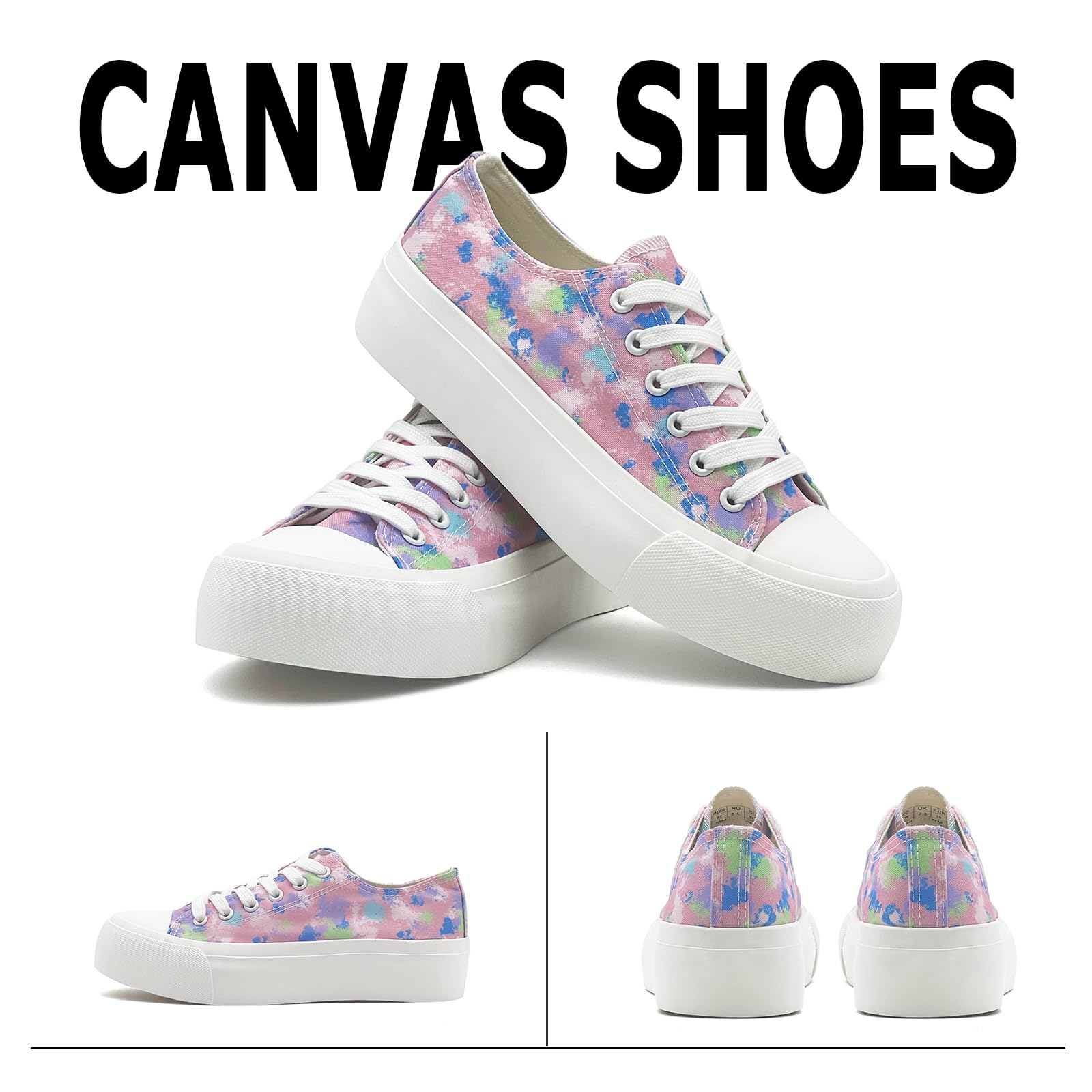 Step out in style with these women's canvas platform trainers, designed to combine fashion with everyday comfort. Crafted from breathable canvas material, these trainers offer a lightweight fit that keeps your feet cool throughout the day. The lace-up closure ensures a secure fit, while the durable rubber sole delivers excellent traction and stability, making them ideal for daily wear.
