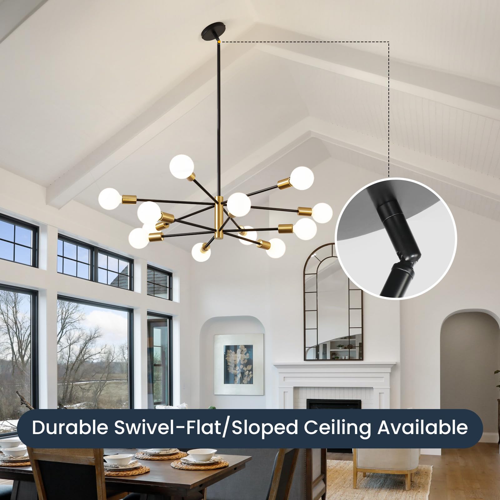 Sputnik Chandelier Ceiling Light 12-Light Modern Adjustable Semi Flush Mount for Dining Room Kitchen Bedroom - Black 12 Lights
