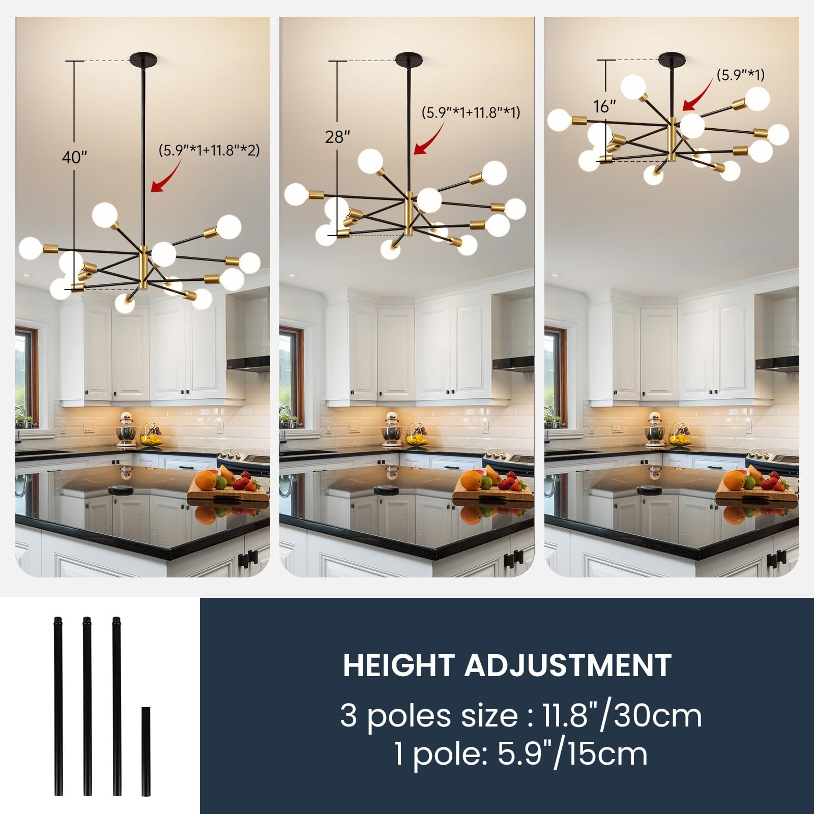 - Modern Design: Inspired by the mid-century starburst style, this chandelier blends contemporary elegance with a timeless look.