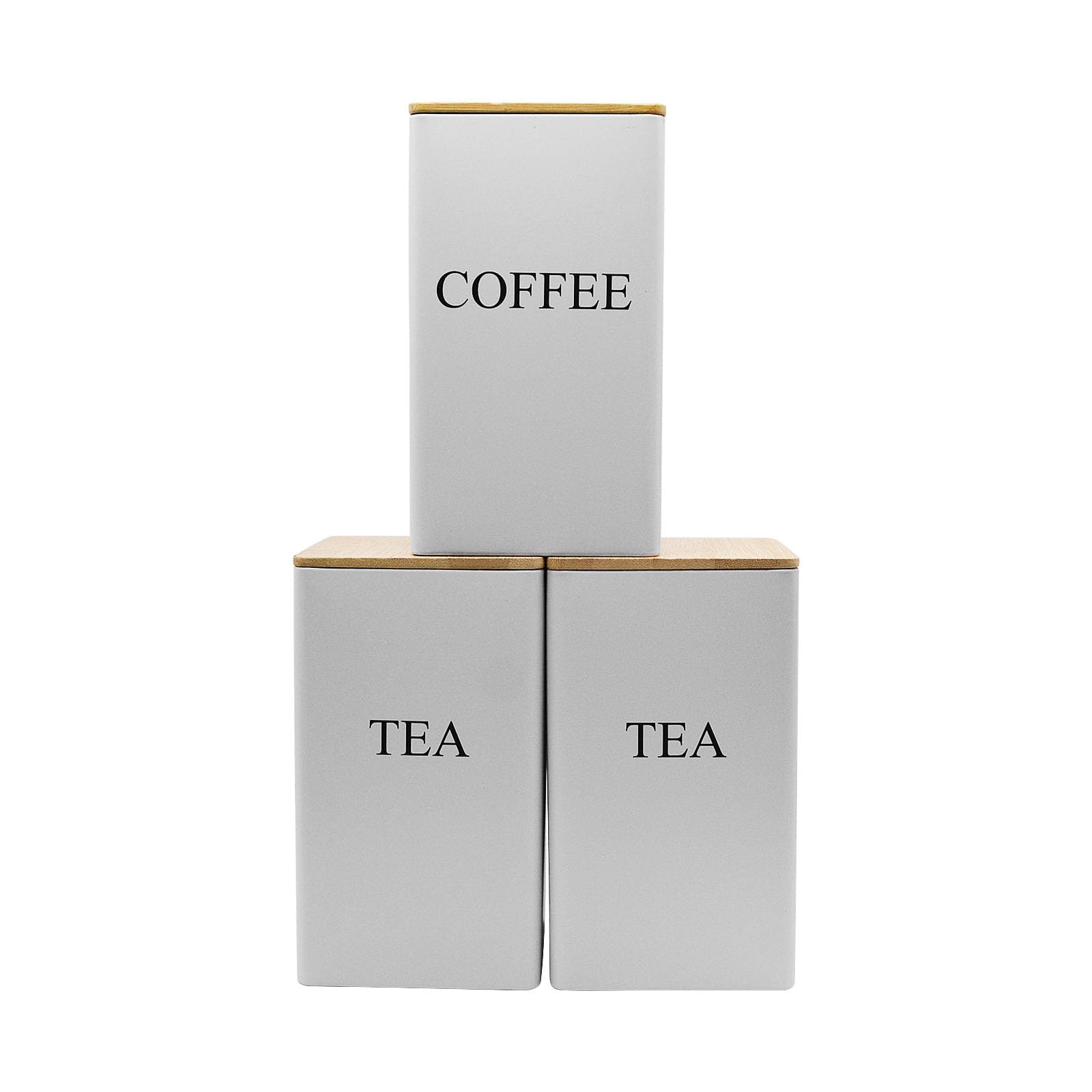 Tea Coffee Sugar Canisters Set With Bamboo Lids