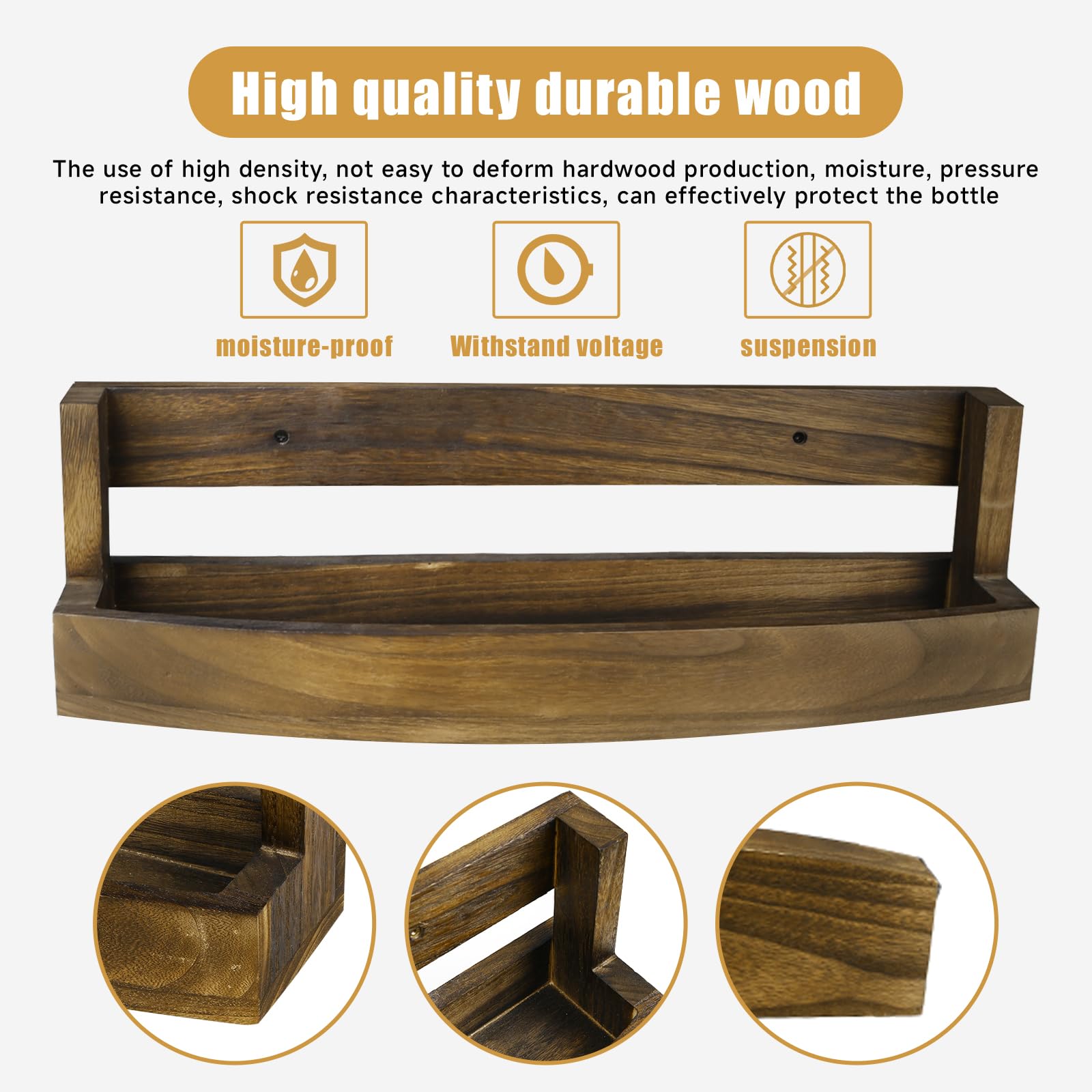 Wall Mounted Wooden Wine Rack Bottle Holder with Glass Shelf for 6 Bottles