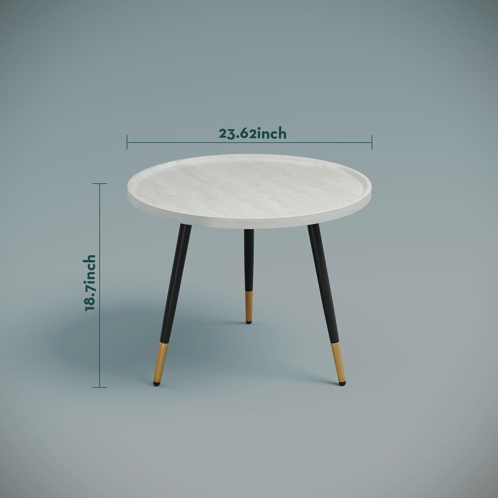 White Round Coffee Table - Modern Tray Design, Ideal for Living Room & Balcony - Easy Assembly